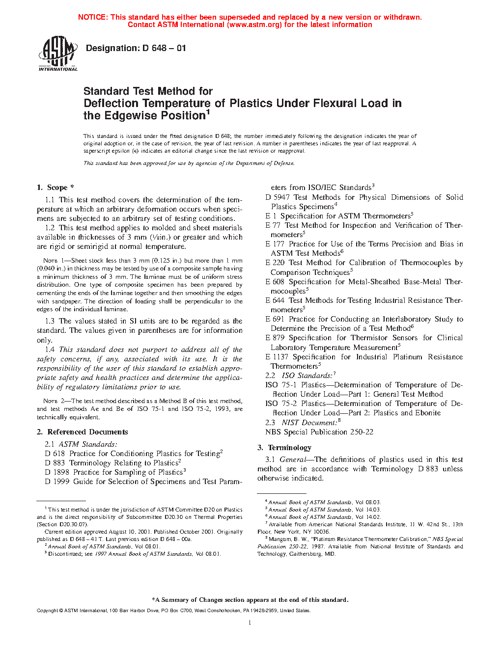 Note 2The test method described as a Method B of this test method, and test methods Ae and Be of ISO 75-1 and ISO 75-2, 1993, are technically equivalent.