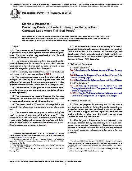 1.1 This practice covers the procedure for preparing laboratory prints of paste inks utilizing an offset color Proofing Press. The initial method was developed by the National Printing Ink Research Institute.