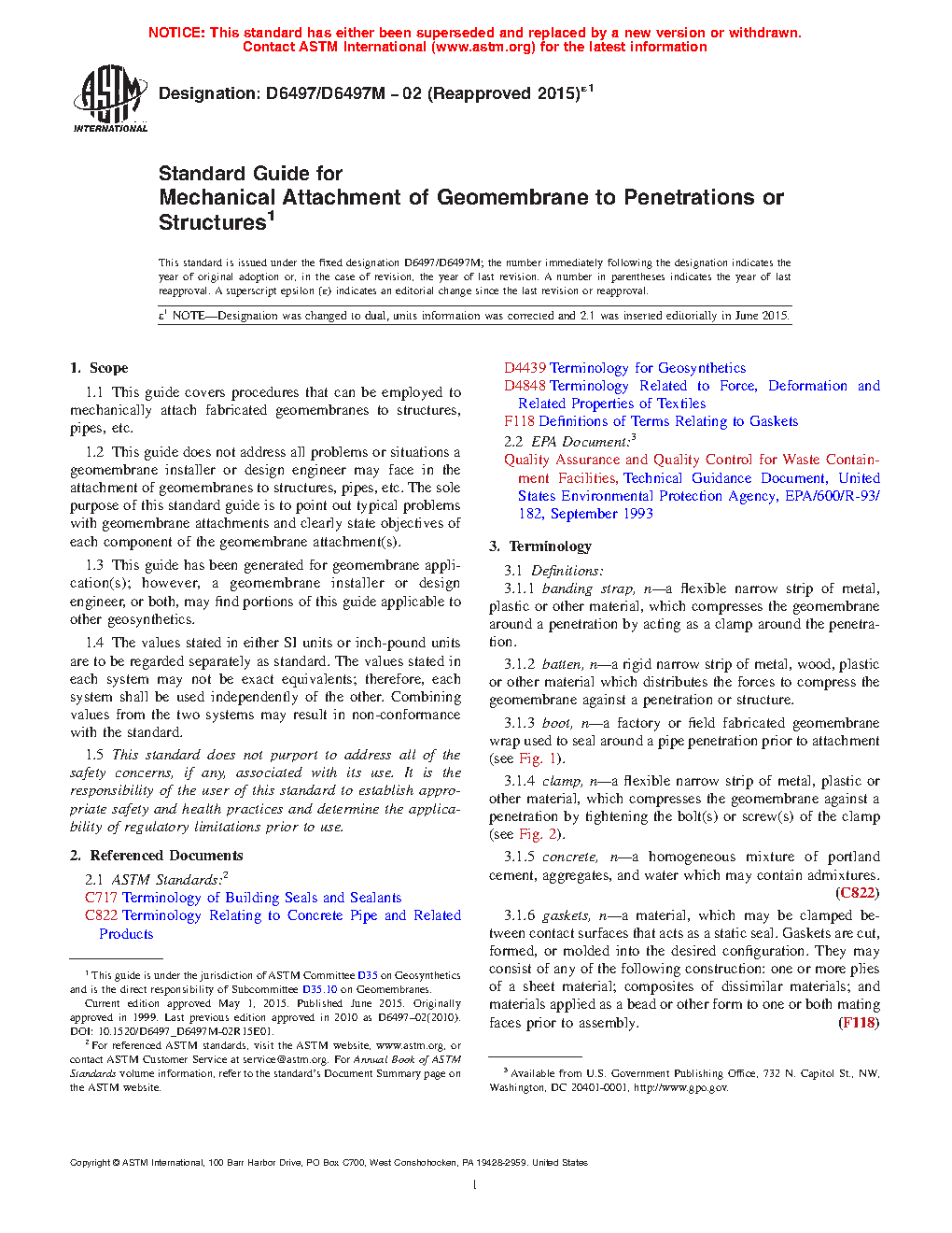 1.1 This guide covers procedures that can be employed to mechanically attach fabricated geomembranes to structures, pipes, etc.