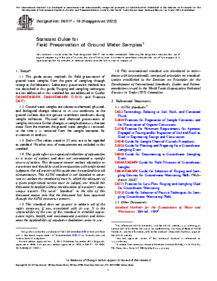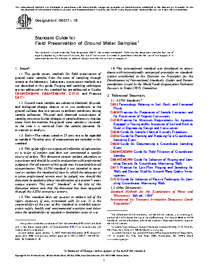 1.1 This guide covers methods for field preservation of ground-water samples. Laboratory preservation methods are not described in this guide.