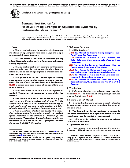 1.1 This practice covers the procedure for determining the relative tinting strength of waterbased ink systems using a computer-aided spectrophotometer.