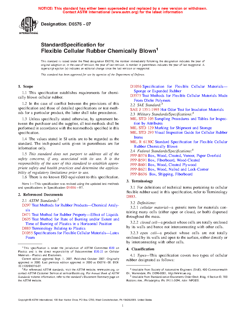 Note 1: This specification was revised using the updated test methods and specifications in the latest version of Specification D1056.