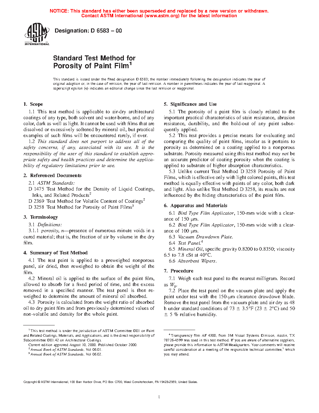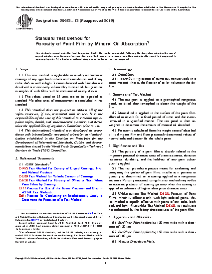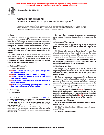 5.2 This test provides a precise means for evaluating and comparing the quality of paint films, insofar as it pertains to porosity as determined on a coating applied to a nonporous substrate. Porosity measured using this test method may not be an accurate predictor of coating porosity when the coating is applied to substrate of higher absorption characteristics.