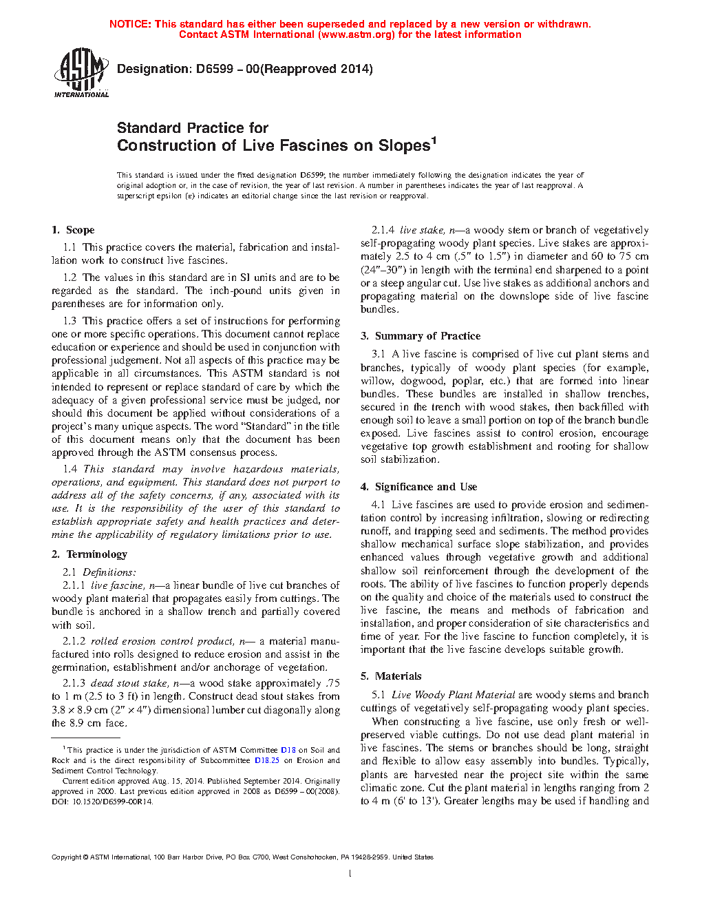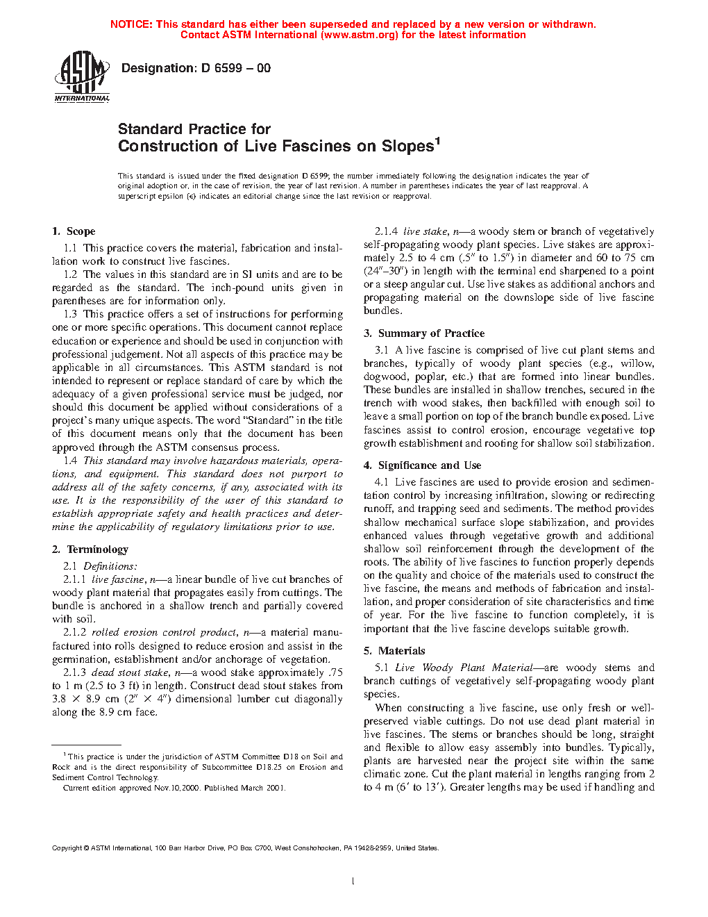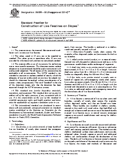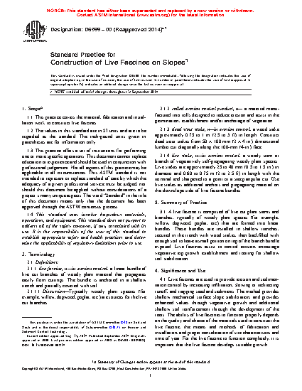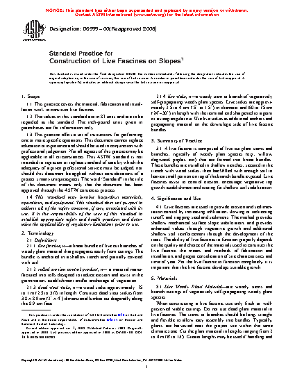 1.1 This practice covers the material, fabrication and installation work to construct live fascines.