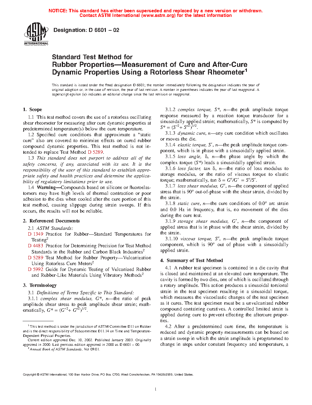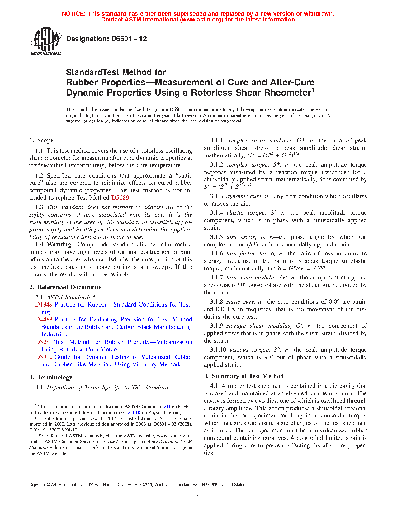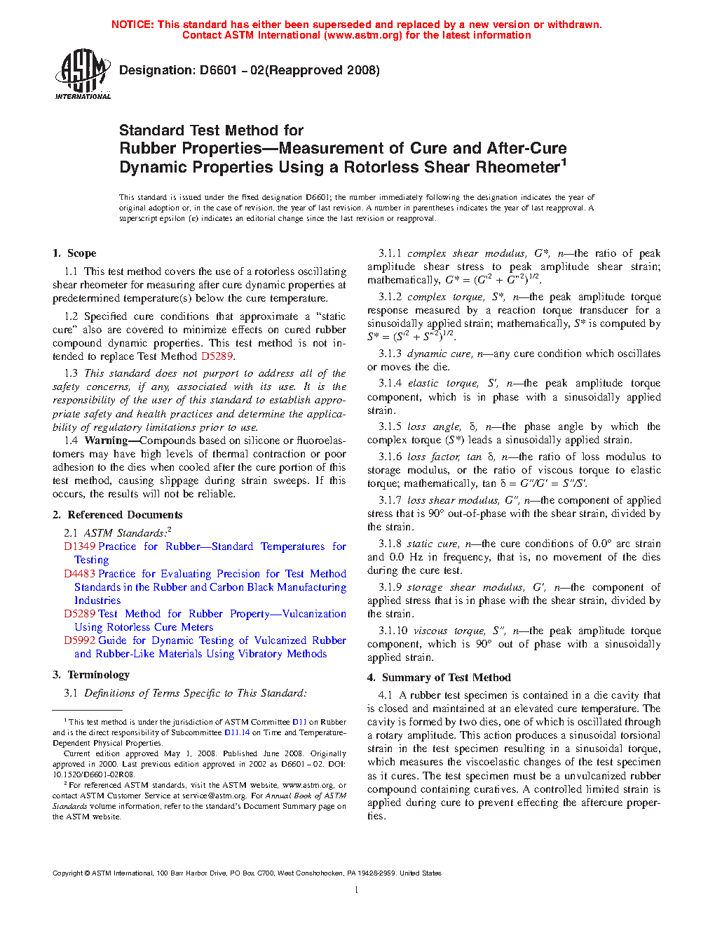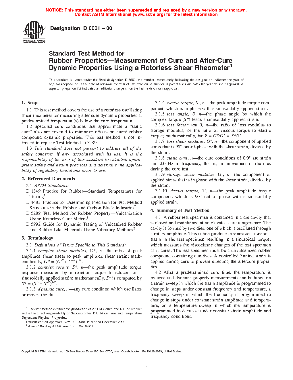 1.2 Specified cure conditions that approximate a “static cure” also are covered to minimize effects on cured rubber compound dynamic properties. This test method is not intended to replace Test Method D5289.