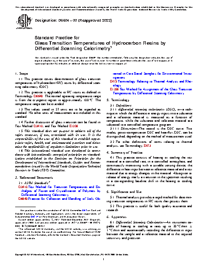 1.4 Further discussion of glass transition can be found in Test Method D3418, and Test Method E1356.