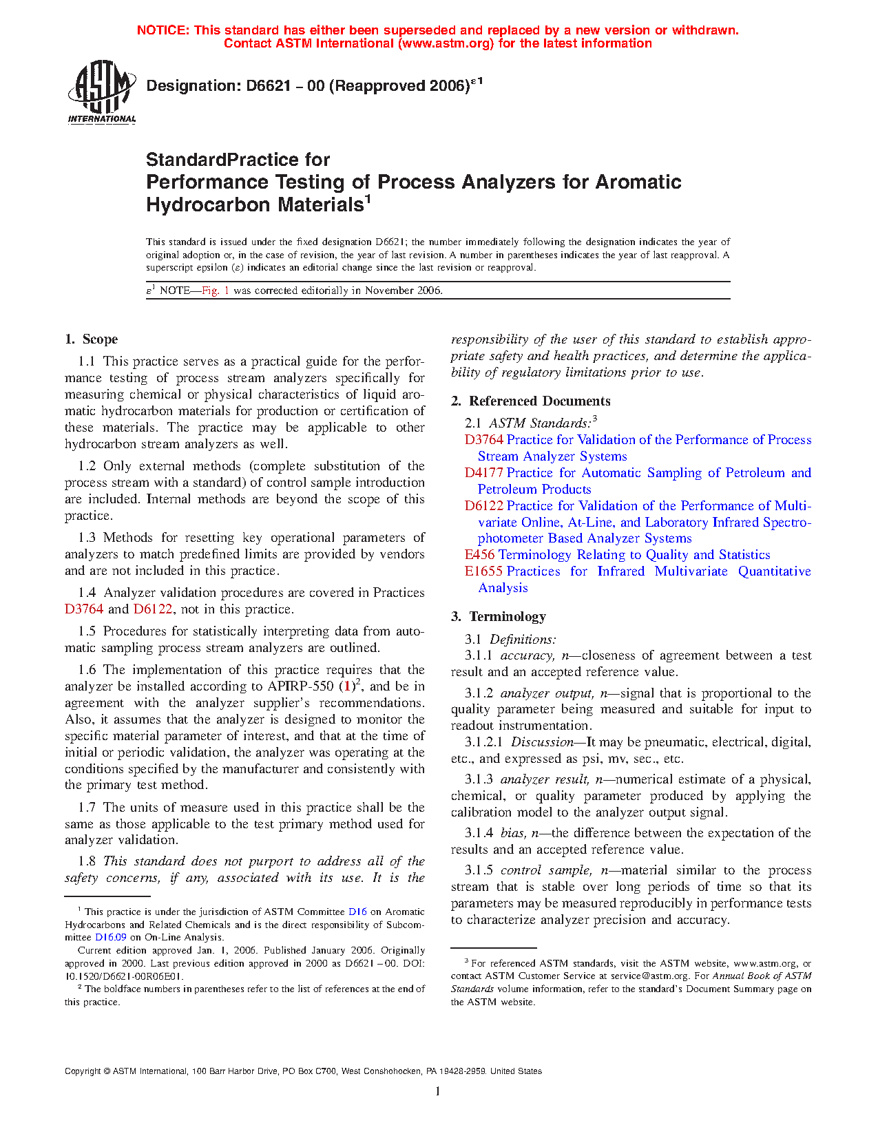 1.4 Analyzer validation procedures are covered in Practices D3764 and D6122, not in this practice.