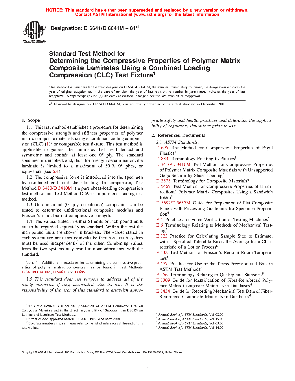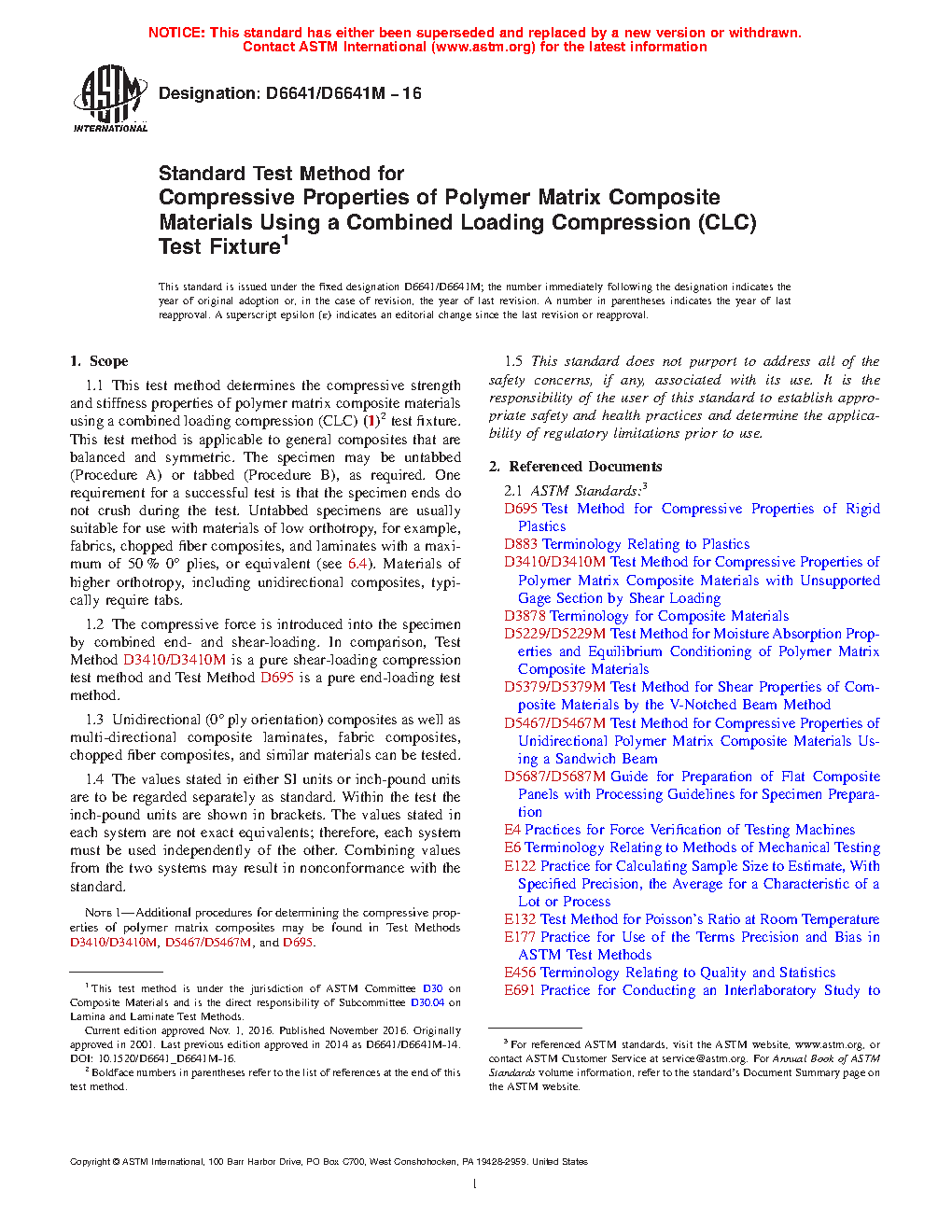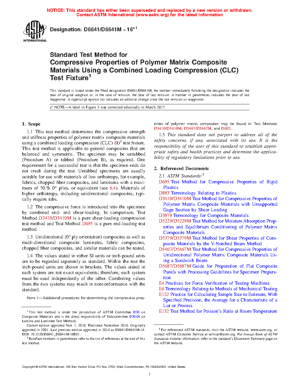 Note 1--Additional procedures for determining the compressive properties of polymer matrix composites may be found in Test Methods D3410/D3410M, D5467, and D695.