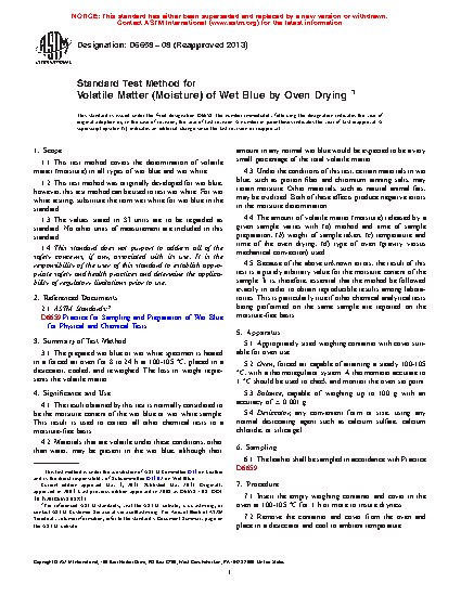 4.2 Materials that are volatile under these conditions, other than water, may be present in the wet blue, although their amount in any normal wet blue would be expected to be a very small percentage of the total volatile matter.