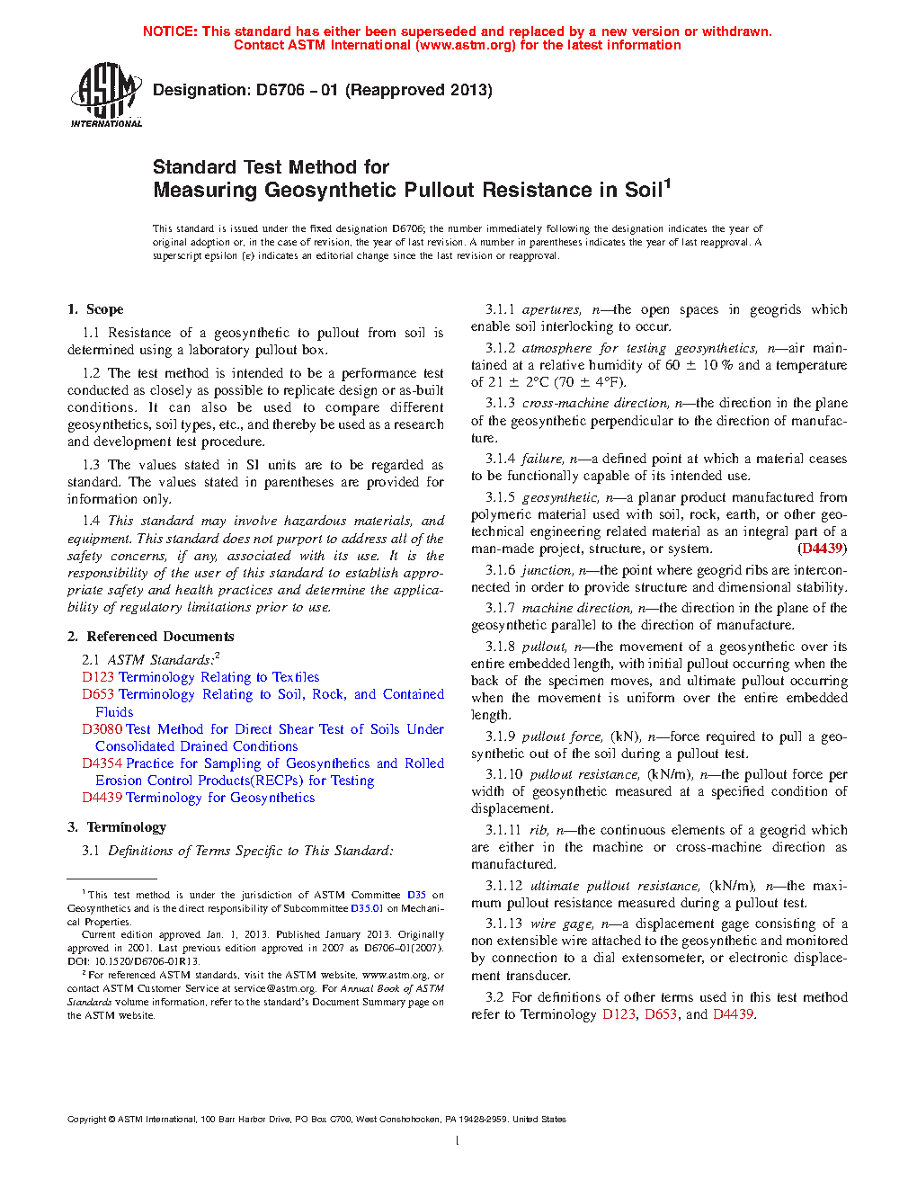 Standard Test Method for Measuring Geosynthetic Pullout Resistance in Soil