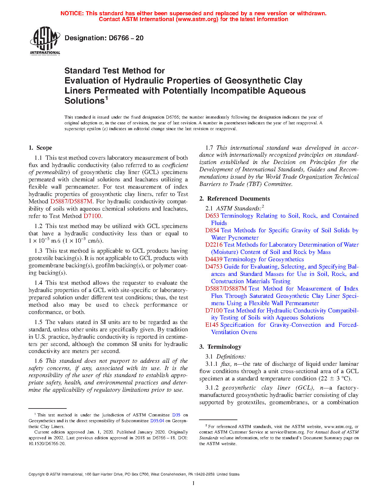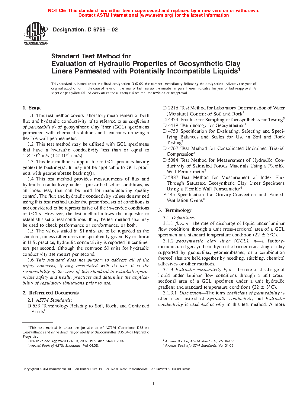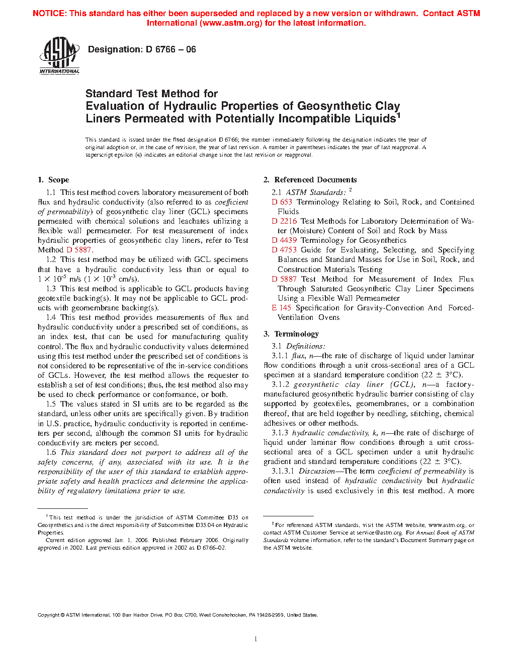 4.3 This test method provides tools for determining flux and hydraulic conductivity values for a given GCL under the following two different scenarios, which should be specified by the requester: