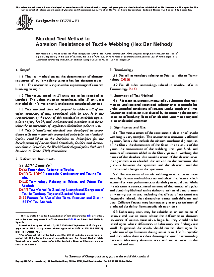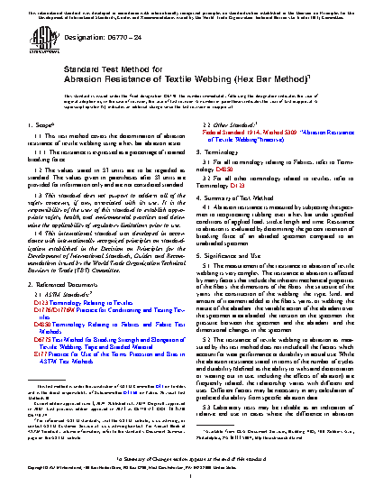 1.1 This test method covers the determination of abrasion resistance of textile webbing using a hex bar abrasion tester.