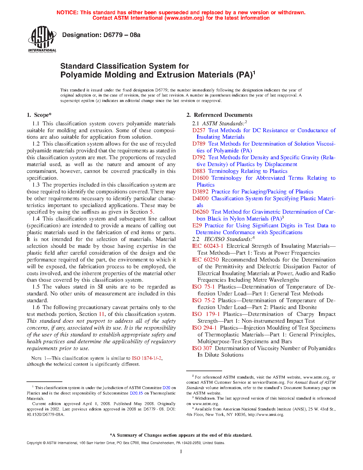 1.1 This classification system covers polyamide materials suitable for molding and extrusion. Some of these compositions are also suitable for application from solution.
