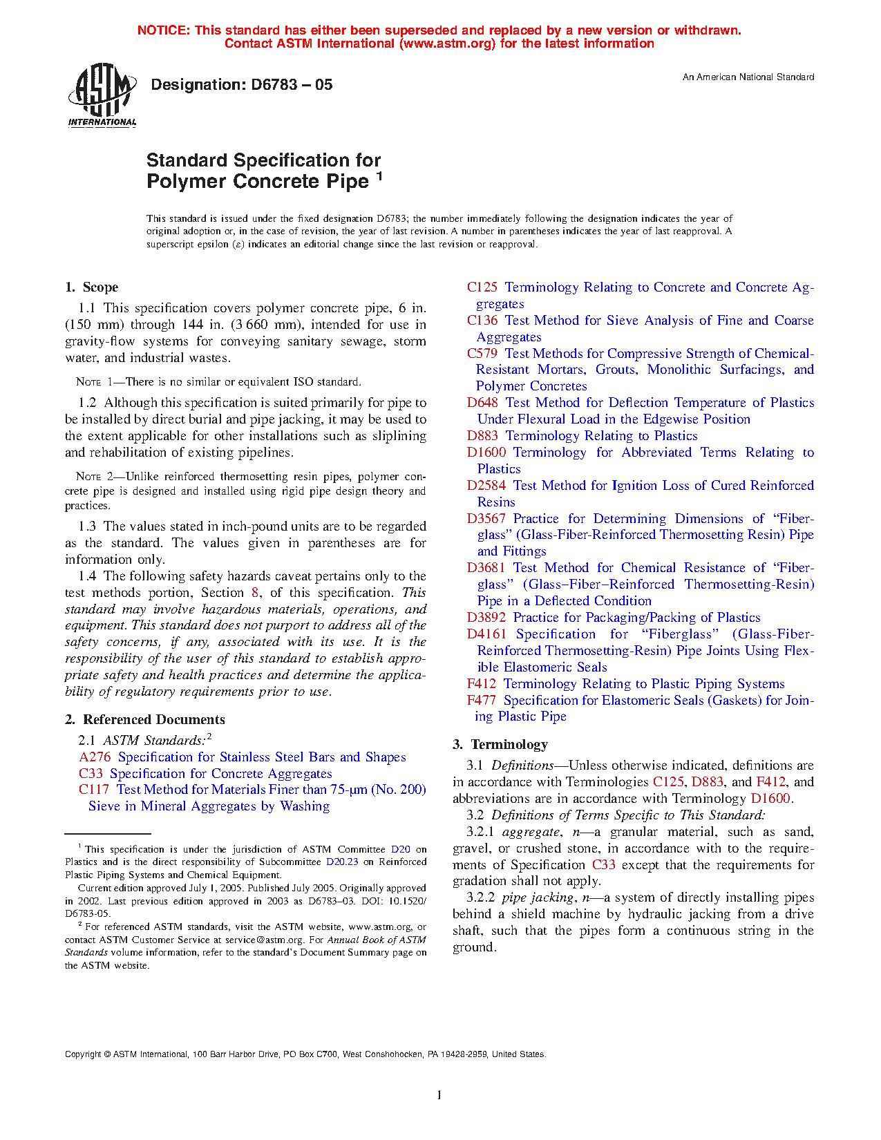 Note 1: Unlike reinforced thermosetting resin pipes, polymer concrete pipe is designed and installed using rigid pipe design theory and practices.