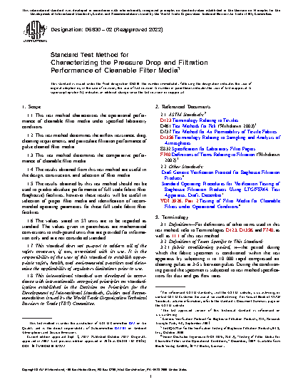 1.3 This test method determines the comparative performance of cleanable filter media.