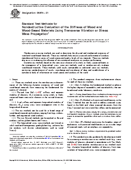 1.4 The standard provides guidance for developing a model for estimating a non-destructive test method result (for example, static modulus of elasticity obtained in accordance with Test Methods D198) from another non-destructive test method result (for example, dynamic longitudinal modulus of elasticity from measurement of longitudinal stress wave propagation time).