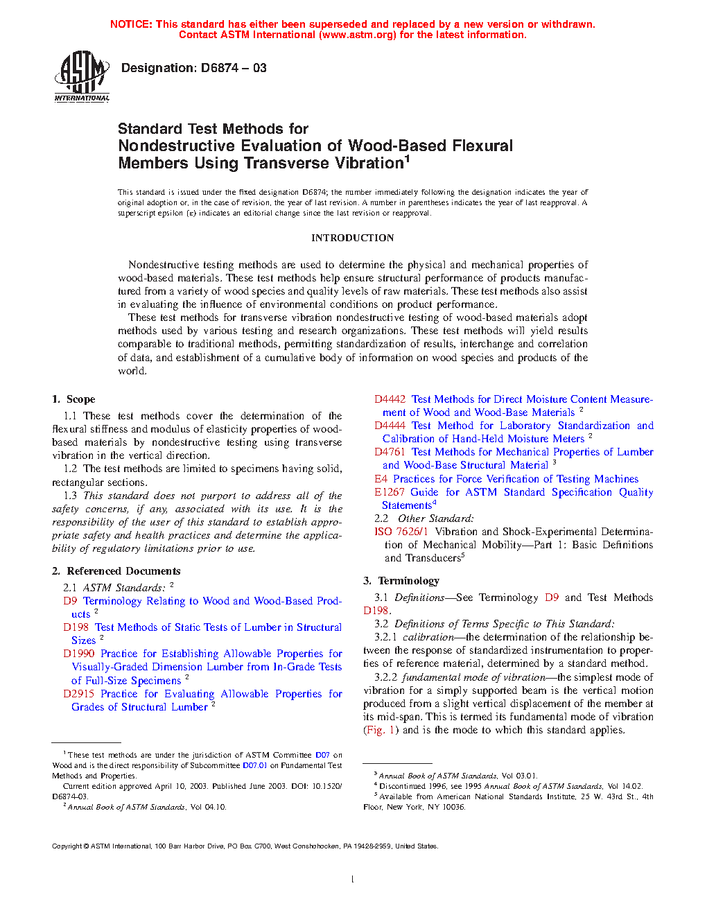1.1 These test methods cover the non-destructive determination of the following dynamic properties of wood and wood-based materials from measuring the fundamental frequency of vibration: