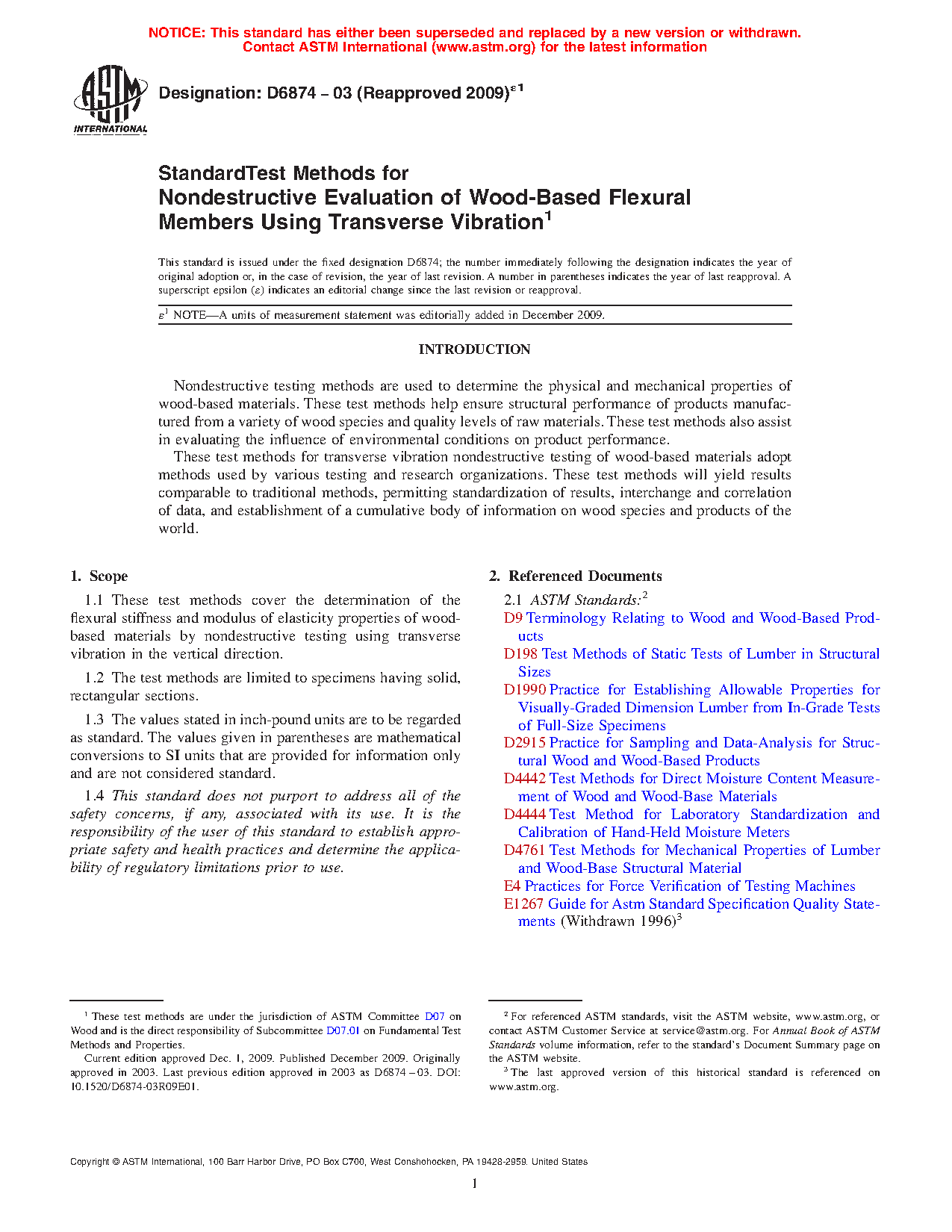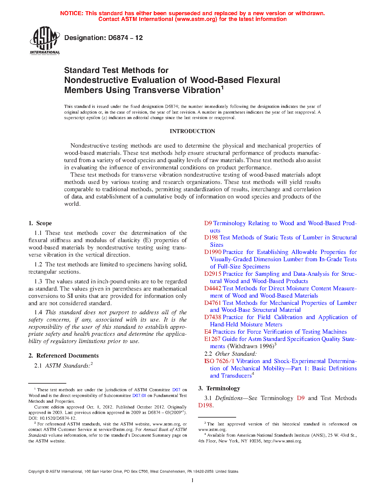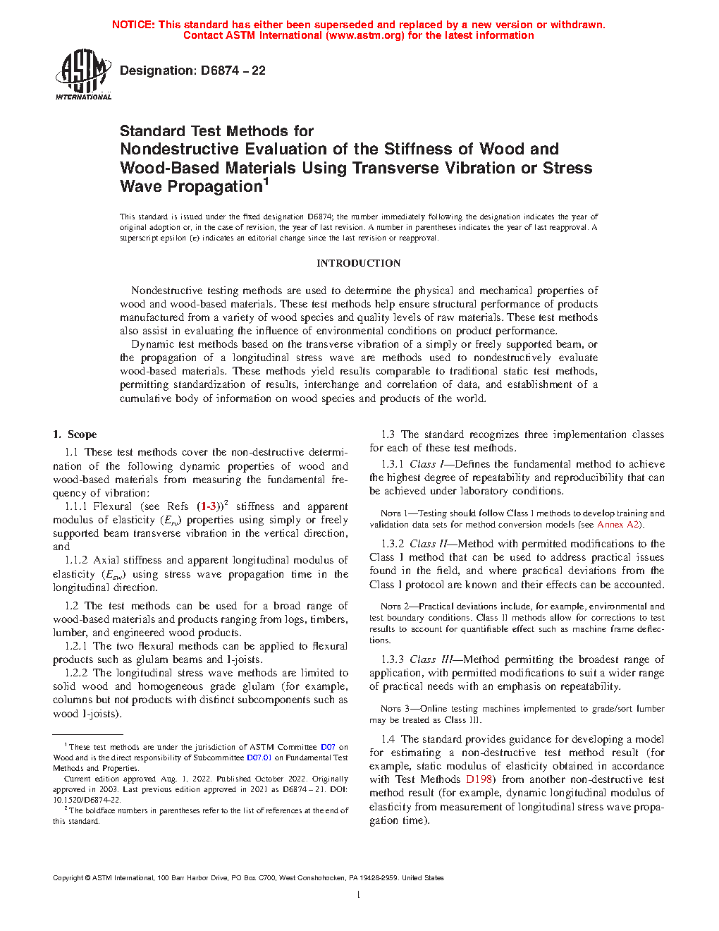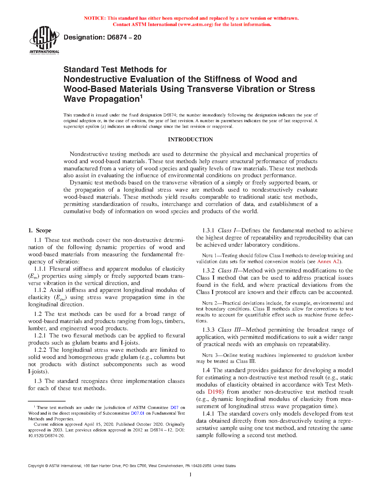 1.2.2 The longitudinal stress wave methods are limited to solid wood and homogeneous grade glulam (for example, columns but not products with distinct subcomponents such as wood I-joists).