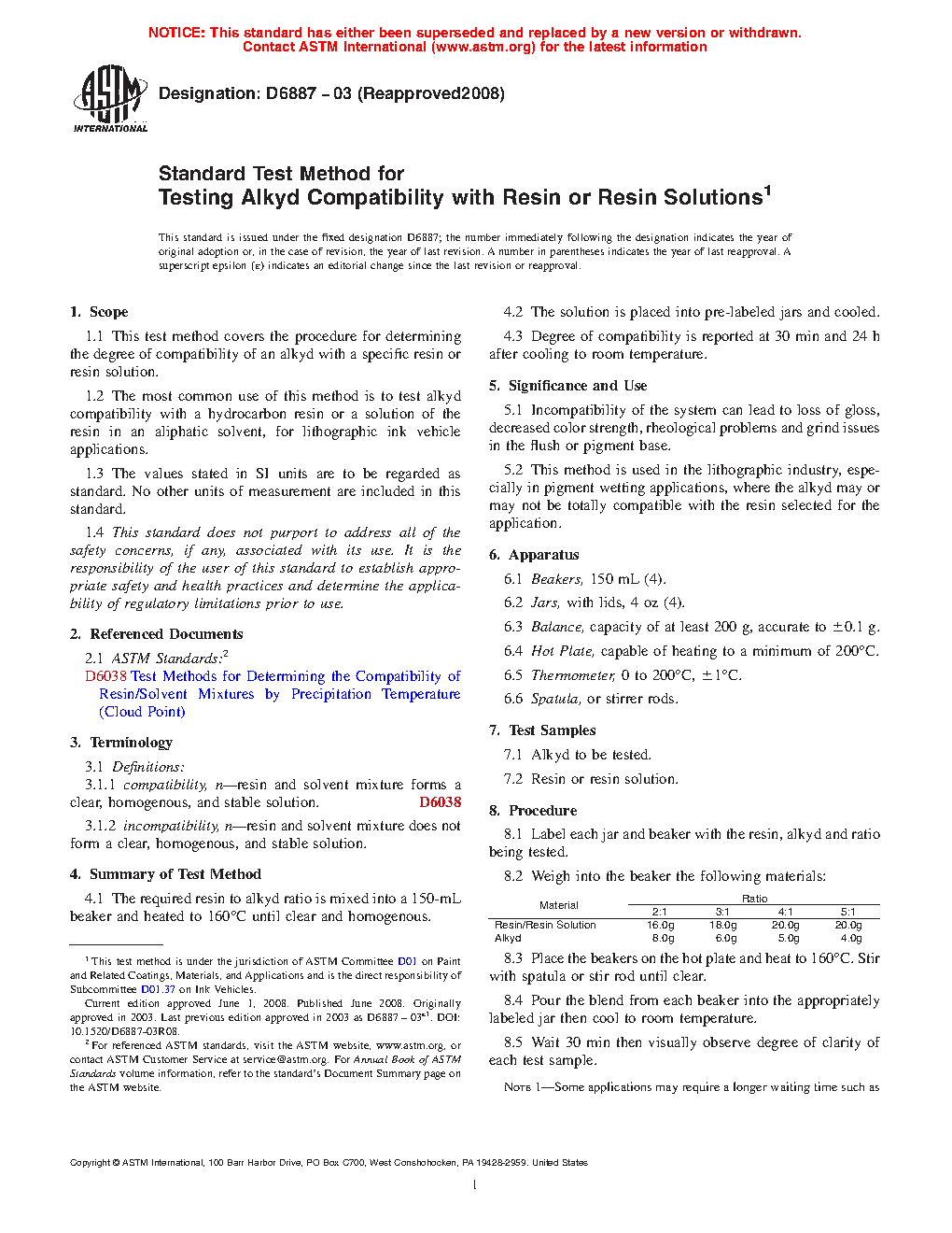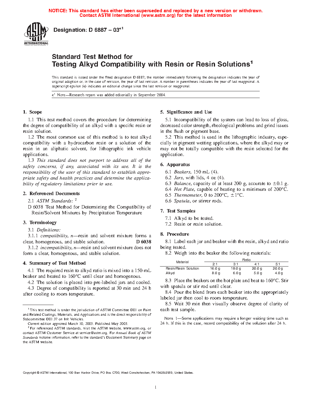 Standard Test Method for Testing Alkyd Compatibility with Resin or Resin Solutions