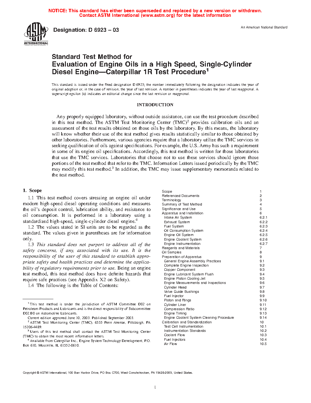 5.1 This is an accelerated engine oil test, performed in a standardized, calibrated, stationary single-cylinder diesel engine that gives a measure of (1) piston and ring groove deposit forming tendency, (2) piston, ring, and liner scuffing and (3) oil consumption. The test is used in the establishment of diesel engine oil specification requirements as cited in Specification D4485 for appropriate API Performance Category C oils (API 1509). The test method can also be used in diesel engine oil development.