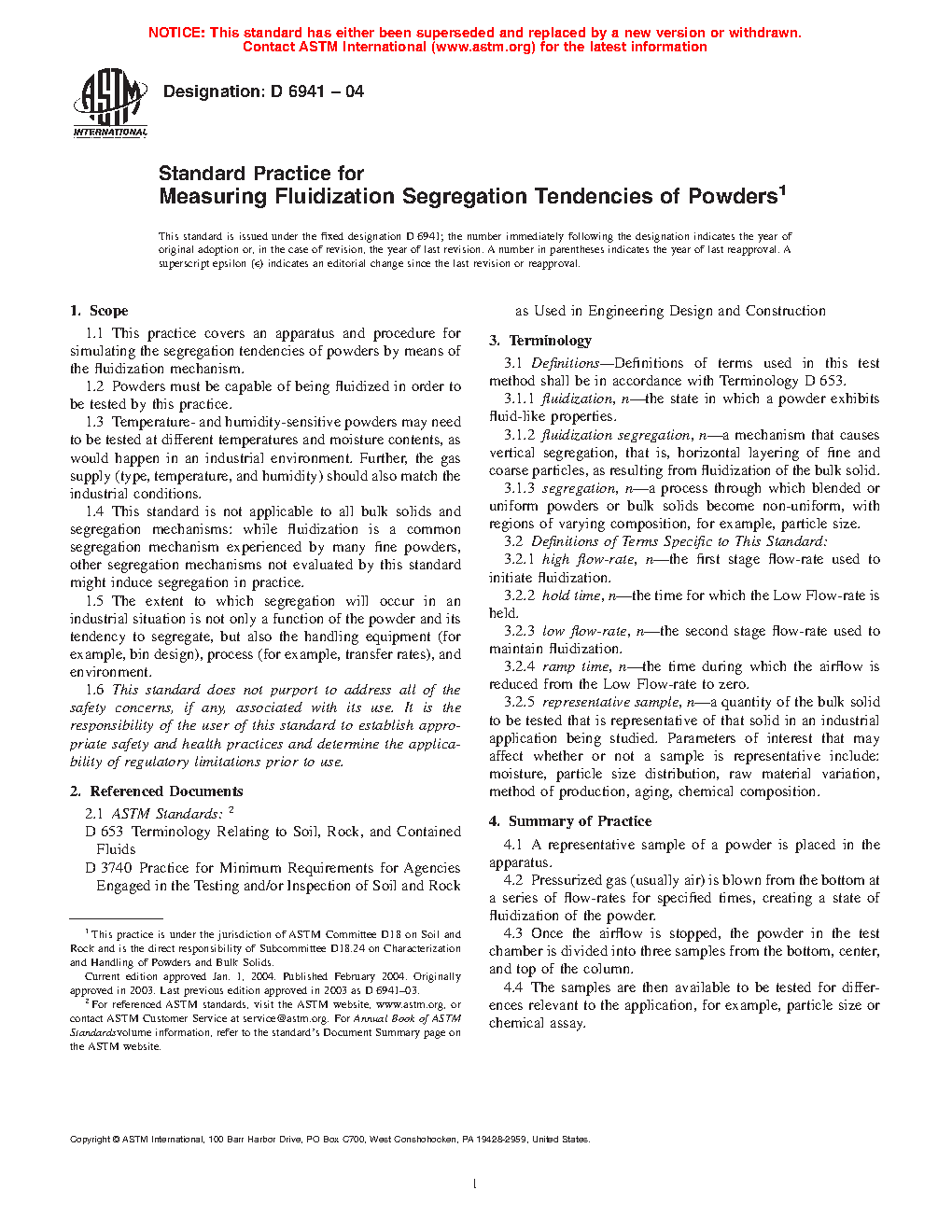 1.4 This standard is not applicable to all bulk solids and segregation mechanisms: while fluidization is a common segregation mechanism experienced by many fine powders, other segregation mechanisms not evaluated by this standard might induce segregation in practice.