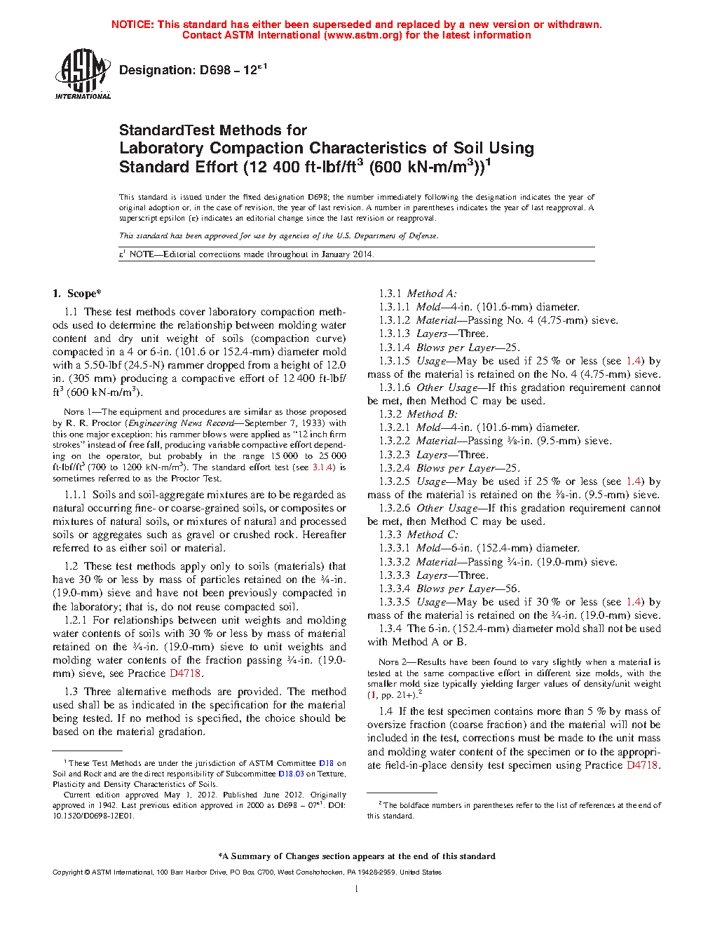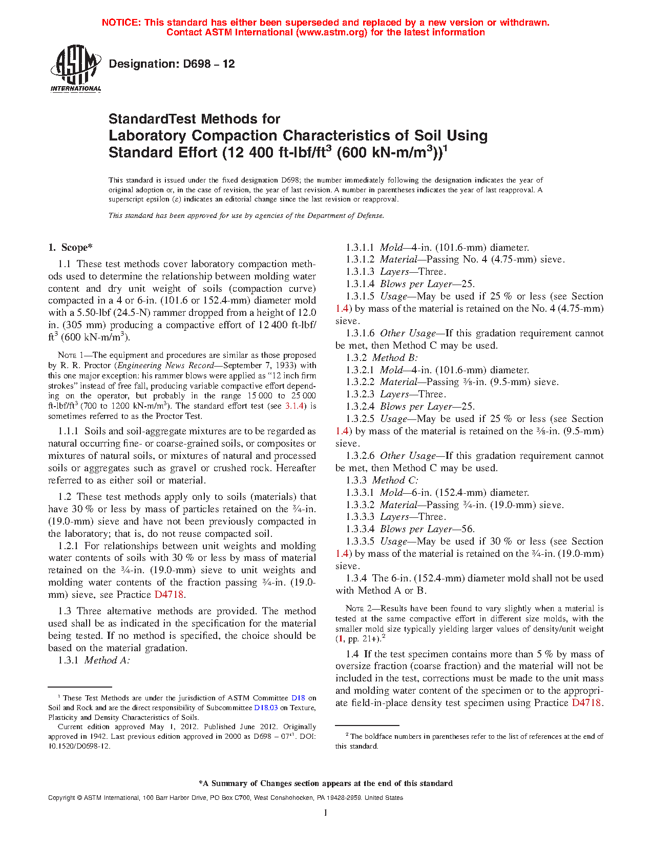 ASTM D698-12(2021)