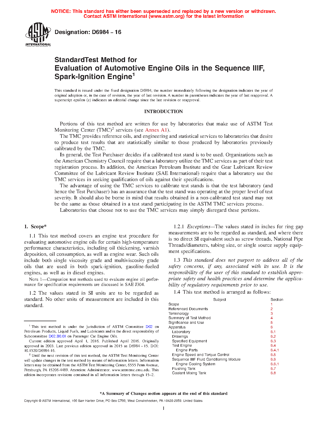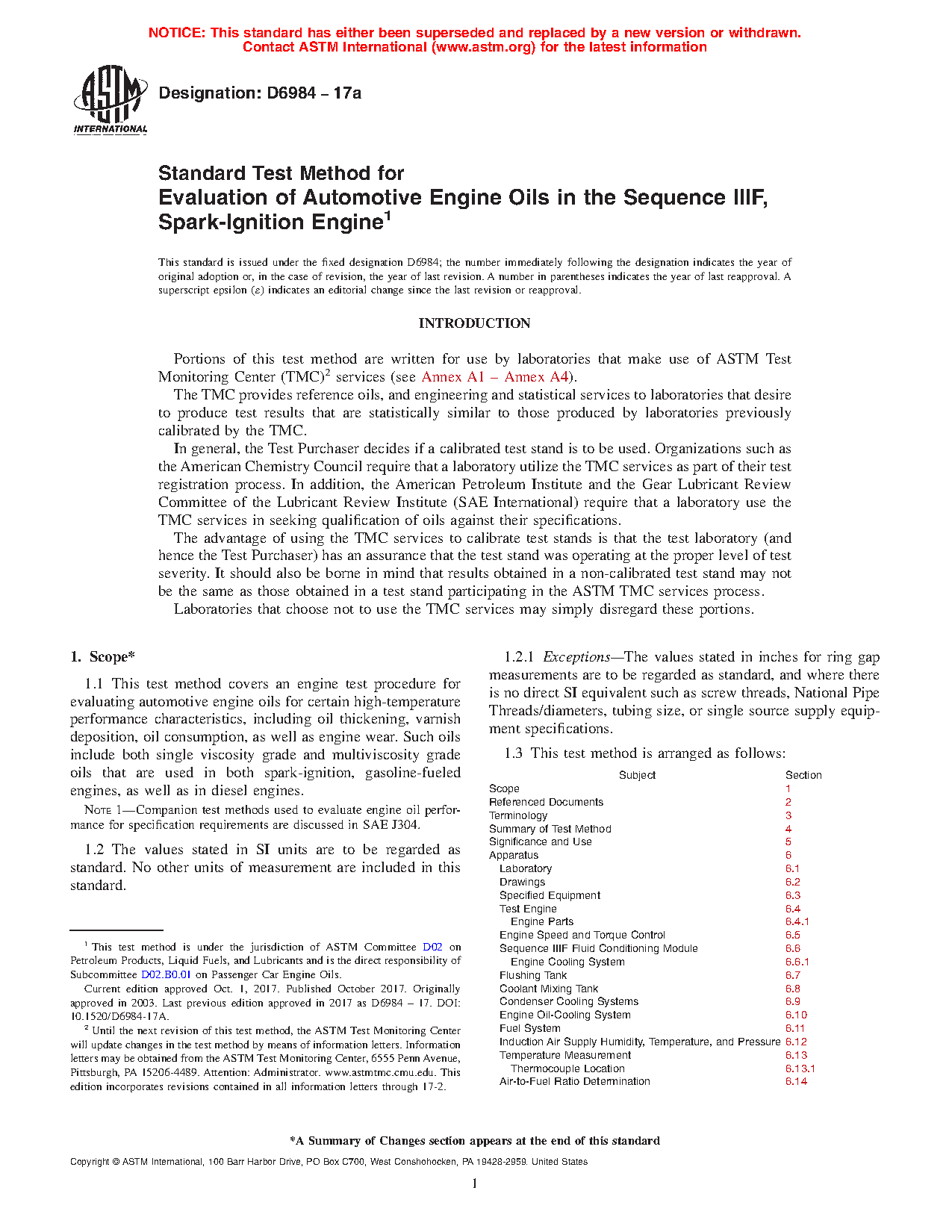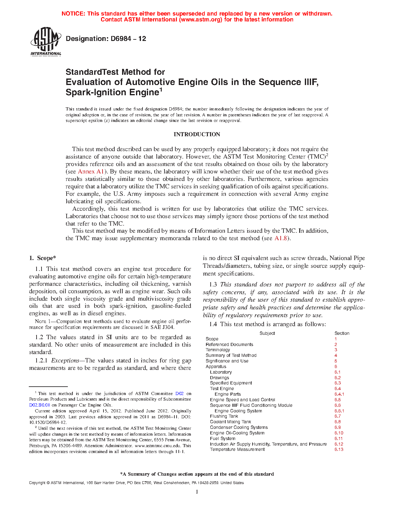 5.6 The Sequence IIIF engine oil test has replaced the Sequence IIIE test and can be used in specifications and classifications of engine lubricating oils, such as: