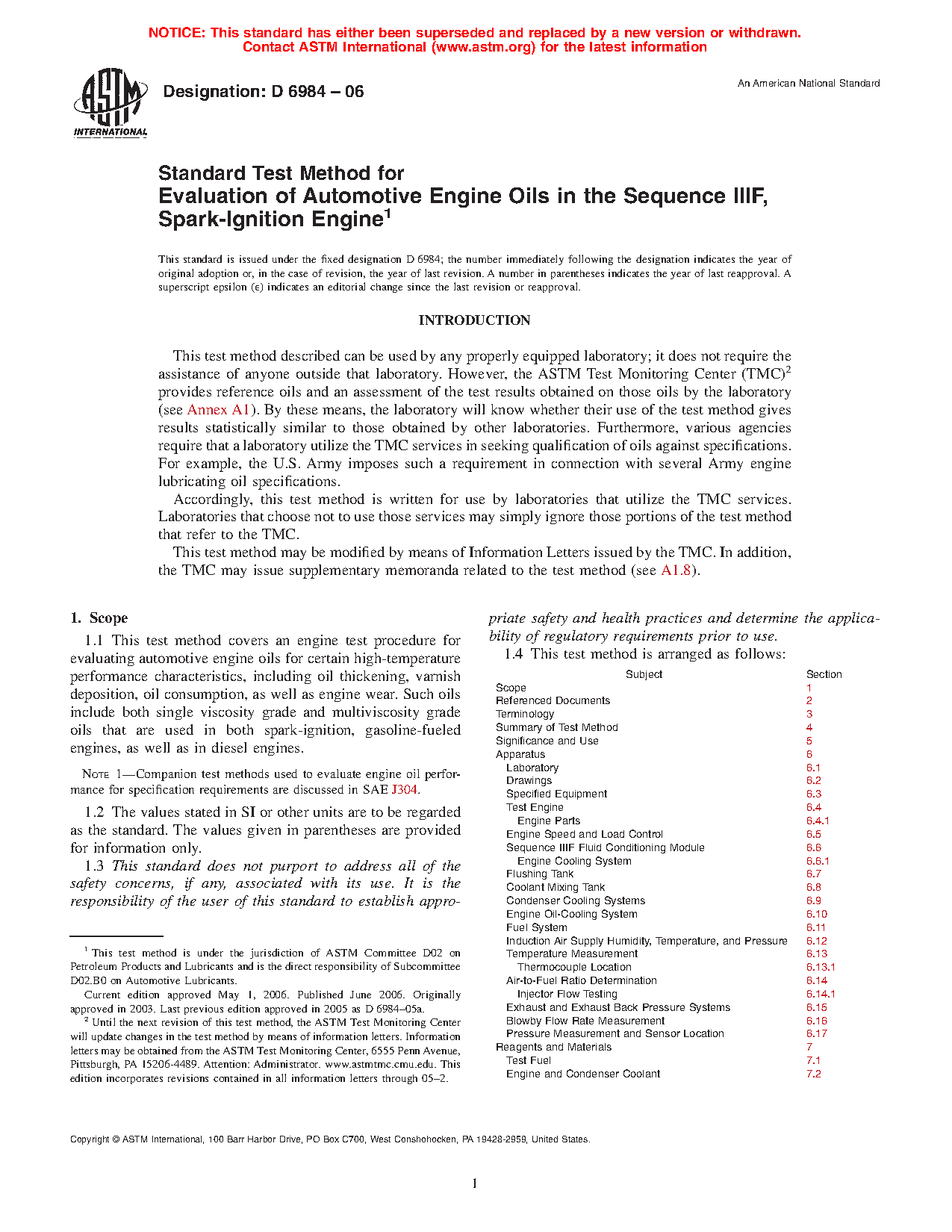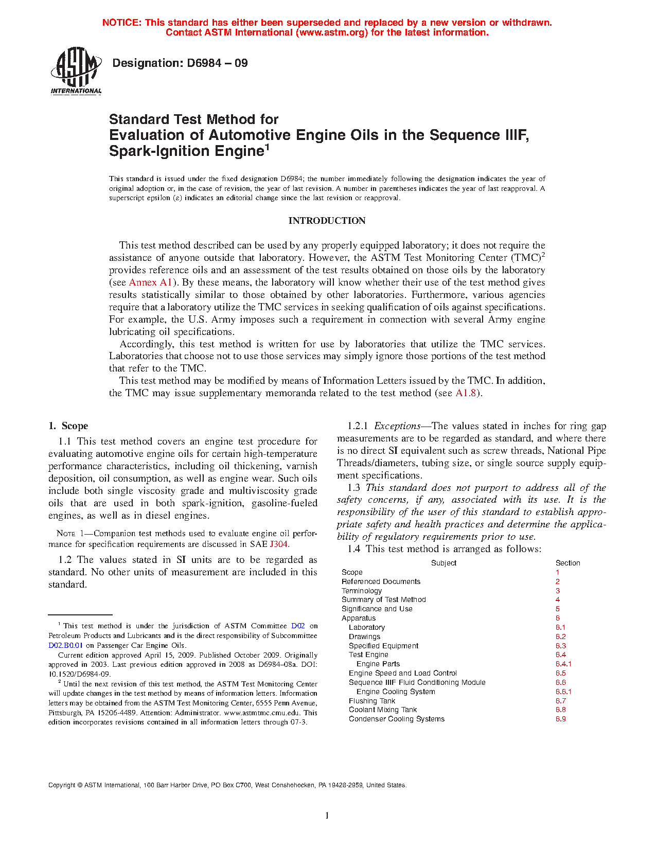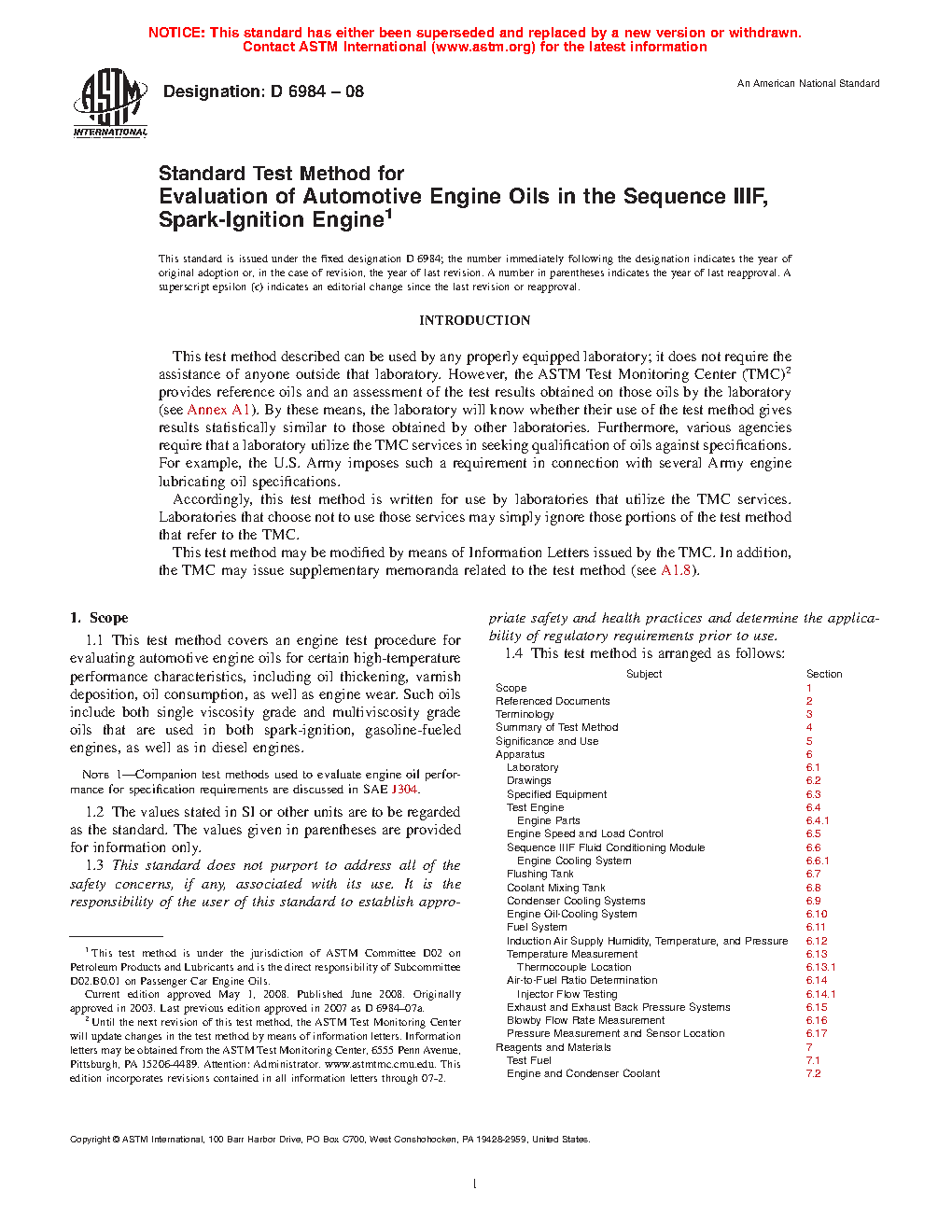 5.6 The Sequence IIIF engine oil test has replaced the Sequence IIIE test and can be used in specifications and classifications of engine lubricating oils, such as: