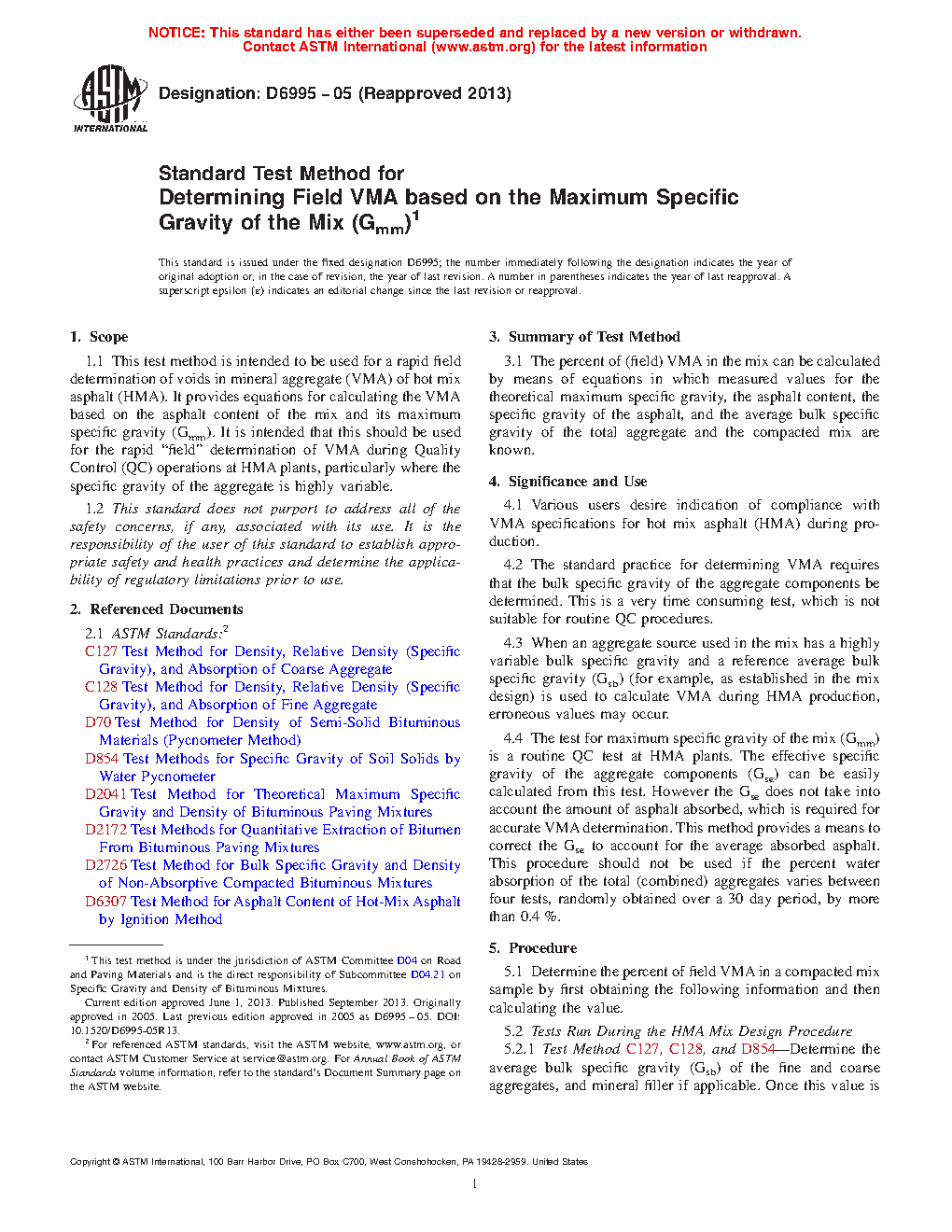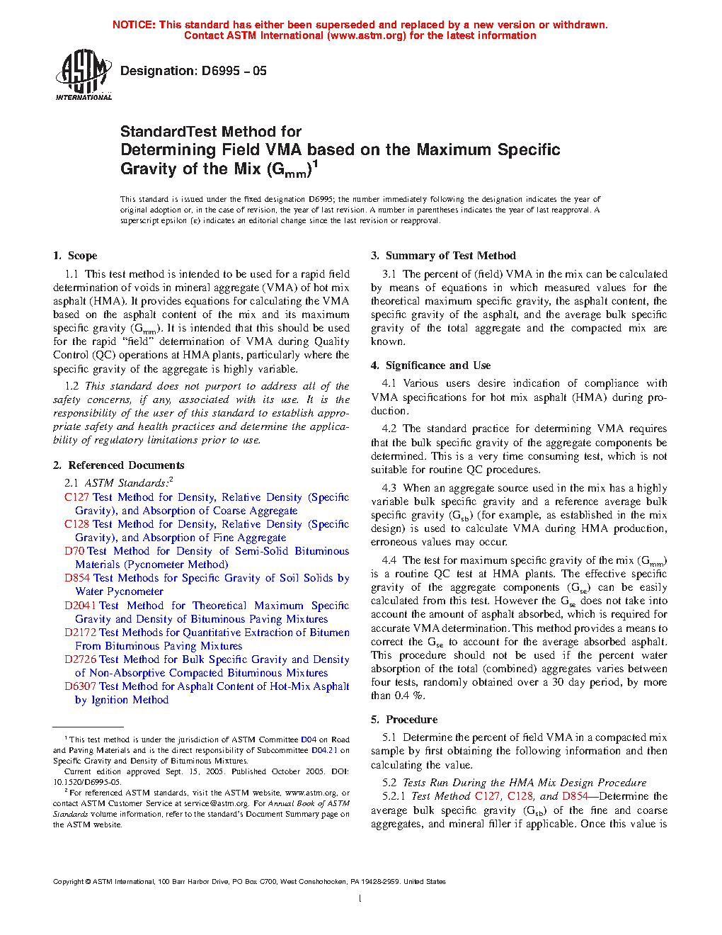 4.2 The standard practice for determining VMA requires that the bulk specific gravity of the aggregate components be determined. This is a very time-consuming test, which is not suitable for routine QC procedures.
