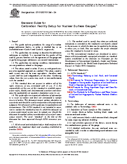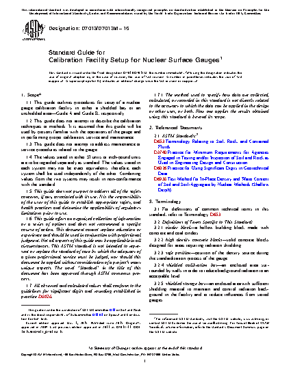 1.1 This guide outlines procedures for setup of a nuclear gauge calibration facility in either a shielded bay or an unshielded area—Guide A and Guide B, respectively.