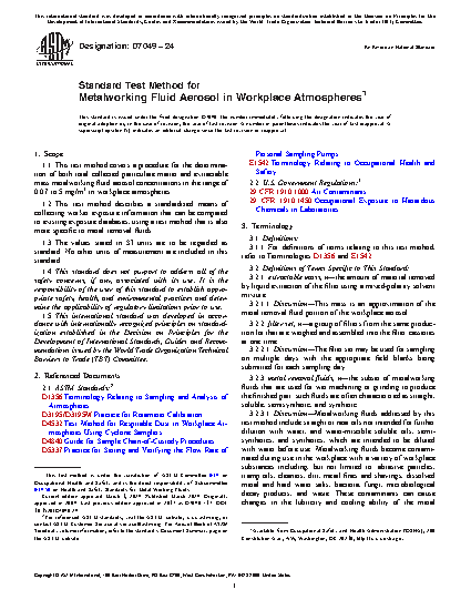 1.2 This test method describes a standardized means of collecting worker exposure information that can be compared to existing exposure databases, using a test method that is also more specific to metal removal fluids.