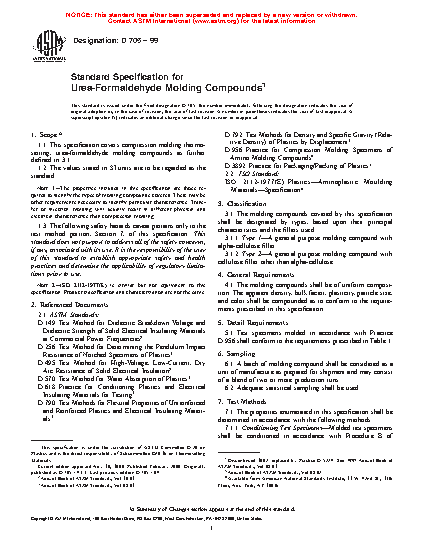 1.1 This specification covers compression molding thermosetting, urea-formaldehyde molding compounds as further defined in .