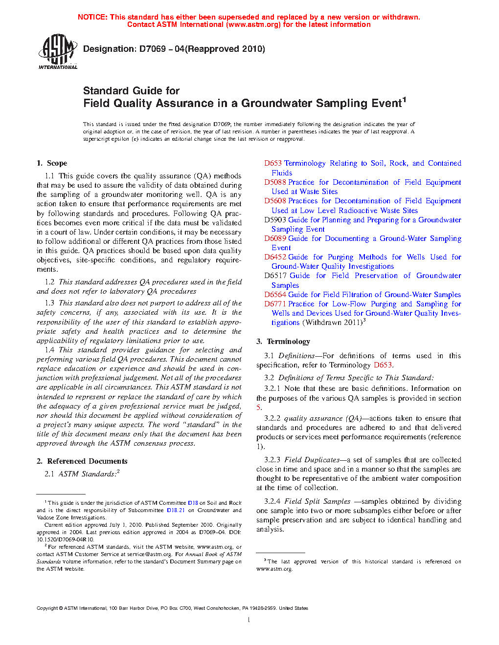 4.2 This guide should be used by a professional or technician who has training or experience in groundwater sampling.