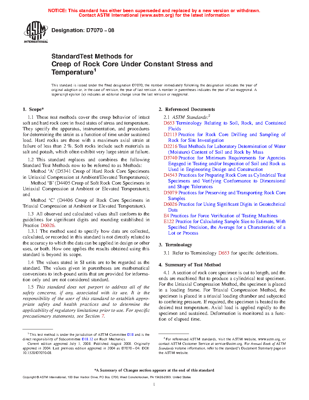 1.2 This standard consists of three methods that cover the creep capacity of core specimens.