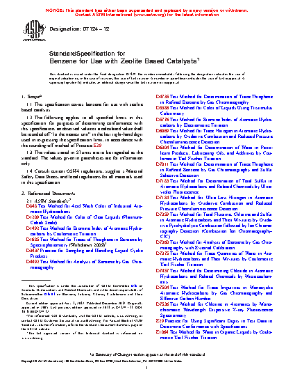 1.1 This specification covers benzene for use with zeolite based catalysts.