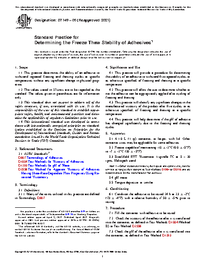 4.2 This practice will allow the user to determine whether or not the adhesive can be appropriately applied after cycling of freezing and thawing.
