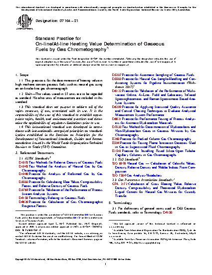 1.1 This practice is for the determination of heating value in high methane content gaseous fuels such as natural gas using an on-line/at-line gas chromatograph.