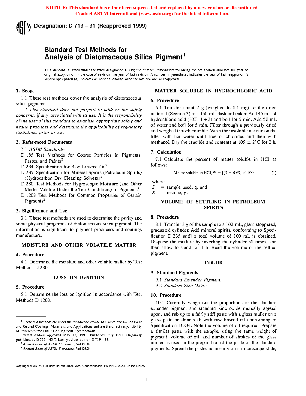 Standard Test Methods for Analysis of Diatomaceous Silica Pigment (Withdrawn 2003)