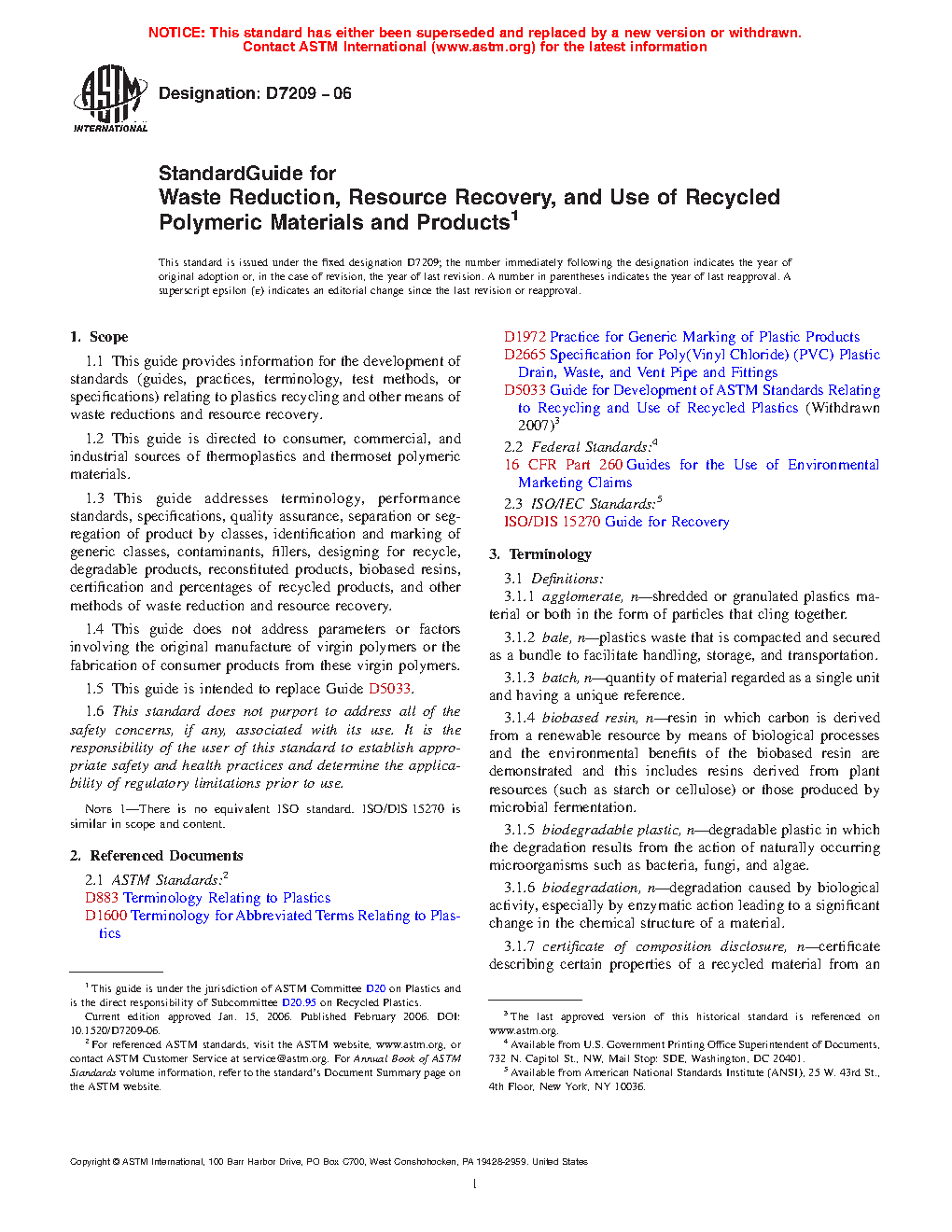 This guide is intended for use by committees or agencies concerned with the development of standards related to recycling, waste reduction, and resource recovery. Such standards are expected to provide uniform, standardized approaches by specifiers, codes, authorities having jurisdiction (AHJs), and consumers.