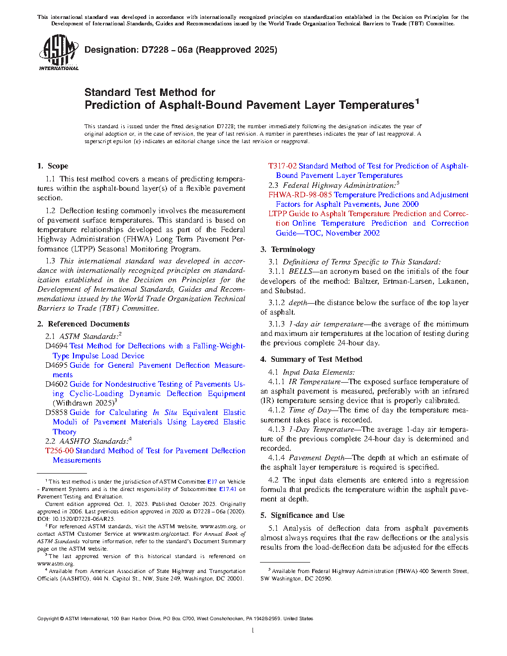 1.2 Deflection testing commonly involves the measurement of pavement surface temperatures. This standard is based on temperature relationships developed as part of the Federal Highway Administration (FHWA) Long Term Pavement Performance (LTPP) Seasonal Monitoring Program.