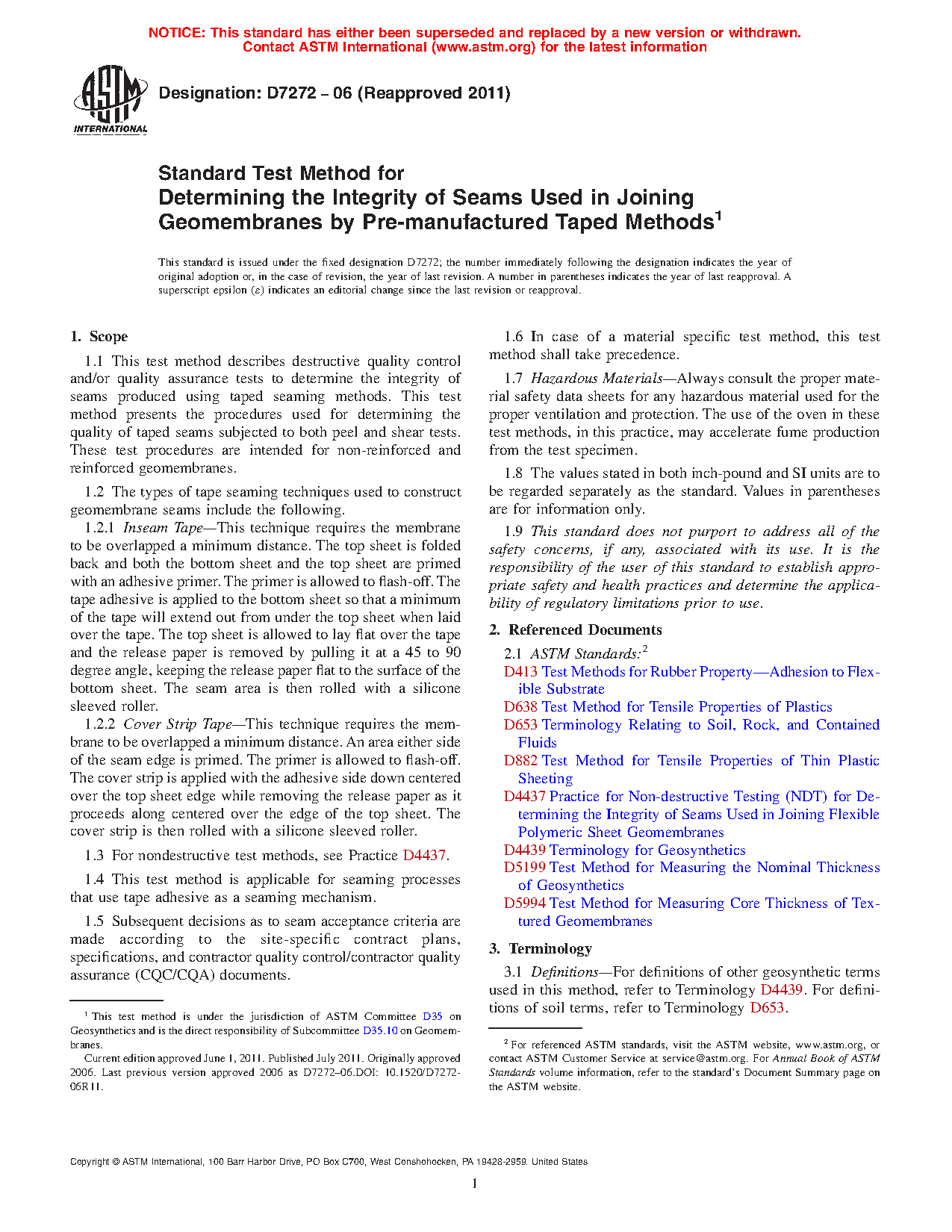1.5 Subsequent decisions as to seam acceptance criteria are made according to the site-specific contract plans, specifications, and contractor quality control/contractor quality assurance (CQC/CQA) documents.