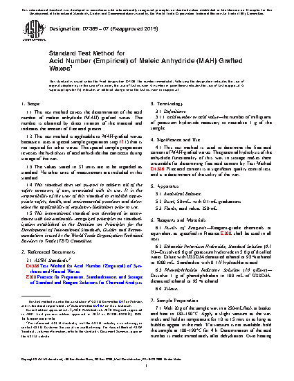 1.2 This test method is applicable to MAH-grafted waxes because it uses a special sample preparation step (7.1) that is not required for other waxes. The special sample preparation reverses the hydrolysis of acid anhydride that can occur during storage of the wax.