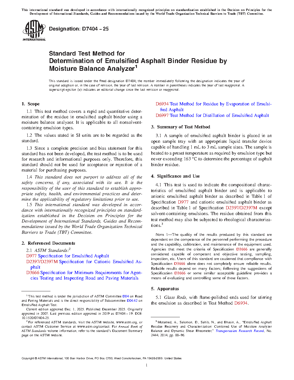 4.1 This test is used to indicate the compositional characteristics of emulsified asphalt binder and is applicable to anionic emulsified asphalt binder as described in Table 1 of Specification D977 and cationic emulsified asphalt binder as described in Table 1 of Specification D2397/D2397M except solvent-containing emulsions. The residue obtained from this test method may also be subjected to rheological characterizations.3
