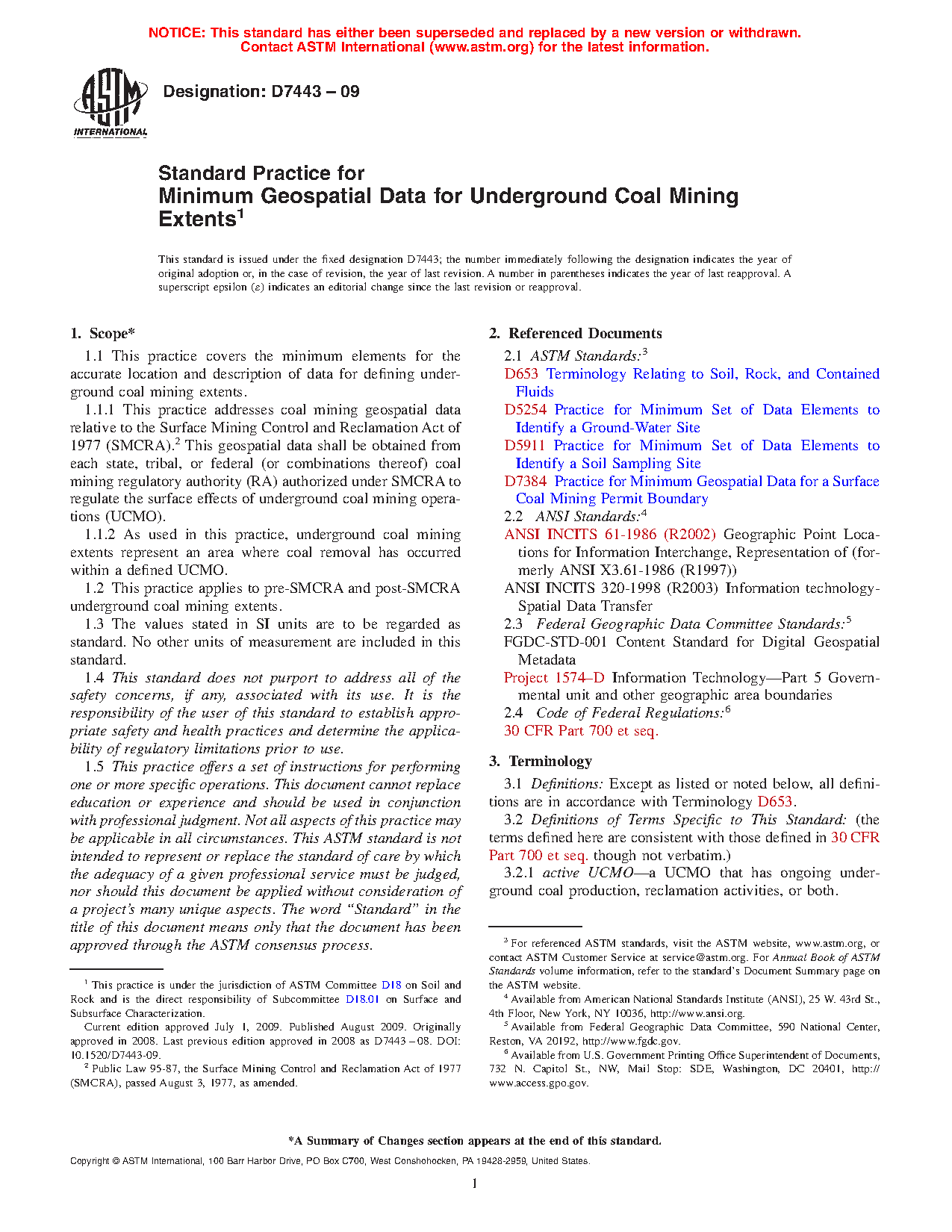 1.1 This practice covers the minimum elements for the accurate location and description of data for defining underground coal mining extents.