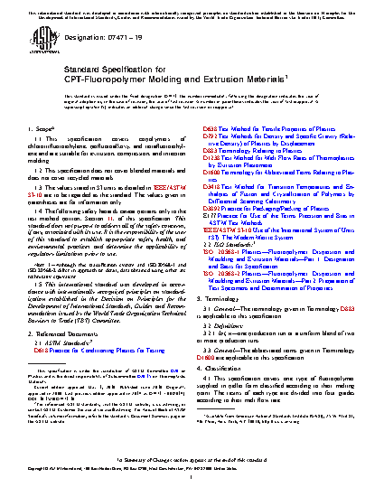 1.1 This specification covers copolymers of chlorotrifluoroethylene, perfluoroalkoxy, and tetrafluoroethylene and are suitable for extrusion, compression, and injection molding.