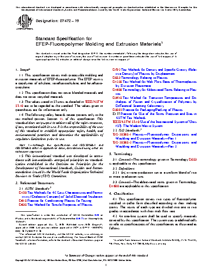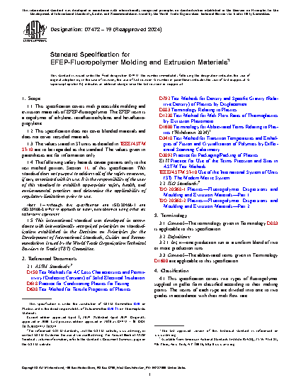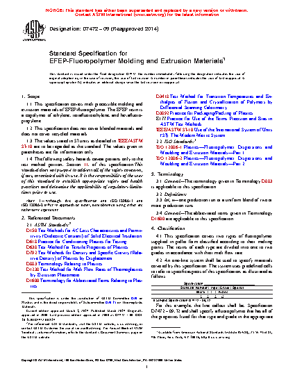 1.1 This specification covers melt processible molding and extrusion materials of EFEP-fluoropolymer. The EFEP resin is a copolymer of ethylene, tetrafluoroethylene, and hexafluoropropylene.
