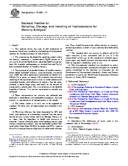 5.5 Based on this practice, two Test Methods (D7622 and D7623) are available for determination of mercury in crude oil, based on cold vapor atomic absorption technique.