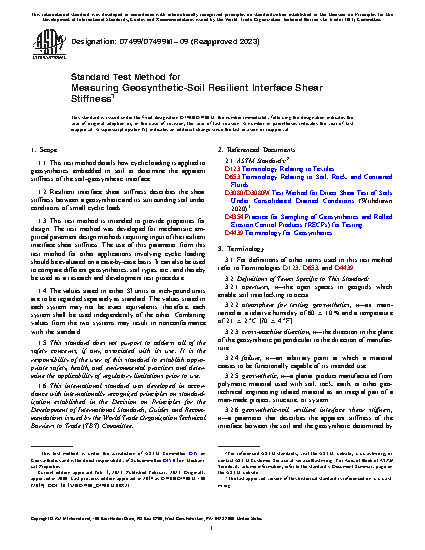 1.3 This test method is intended to provide properties for design. The test method was developed for mechanistic empirical pavement design methods requiring input of the resilient interface shear stiffness. The use of this parameter from this test method for other applications involving cyclic loading should be evaluated on a case-by-case basis. It can also be used to compare different geosynthetics, soil types, etc., and thereby be used as a research and development test procedure.