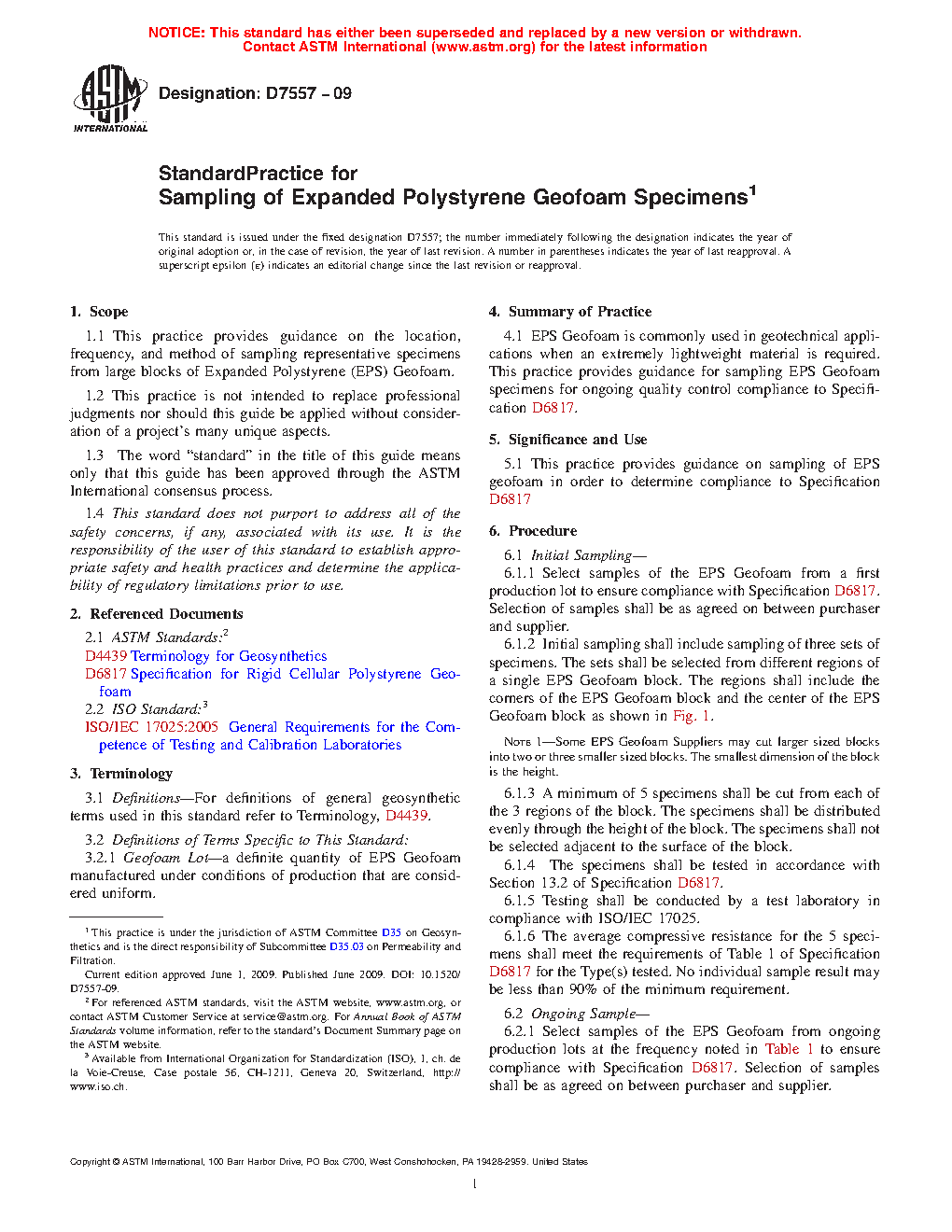 5.1 This practice provides guidance on sampling of EPS geofoam in order to determine compliance to Specification D6817.