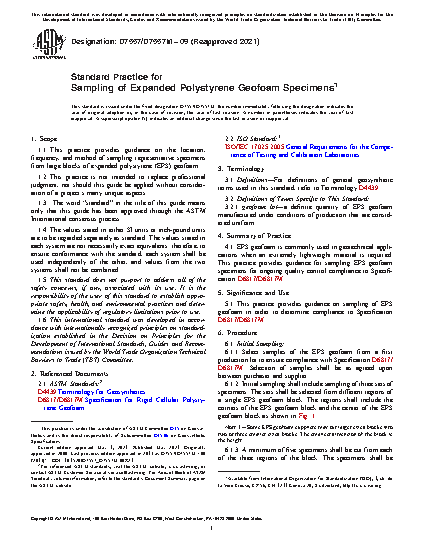 5.1 This practice provides guidance on sampling of EPS geofoam in order to determine compliance to Specification D6817/D6817M.